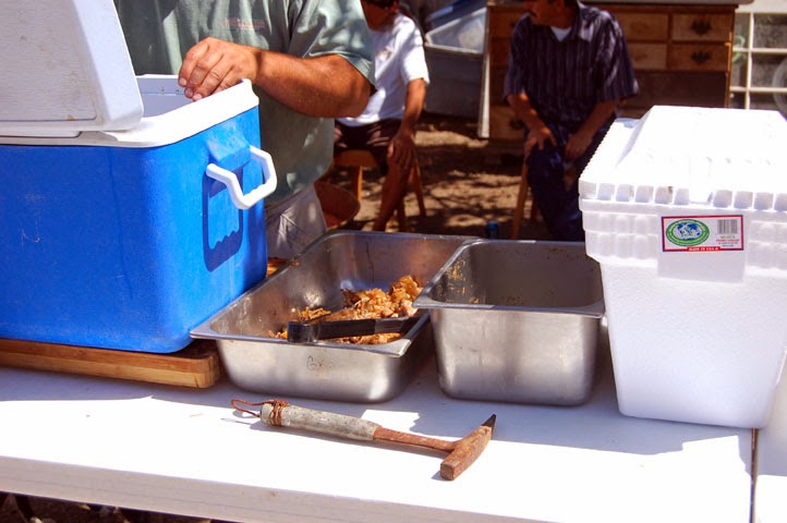 This year Teddy served some delicious carnitas--pork shoulders boiled in lard for hours, then pulled and served in soft tacos with a delicious topping of chopped vegetables. I don't know what all went into the topping but one was cilantro. Yummy! Various dishes were carried in to complete the meal.