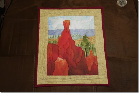 Here is my latest project—a quilted wall hanging of Thor’s Hammer, a famous rock formation in Bryce Canyon National Park. (This was put together from a kit.)